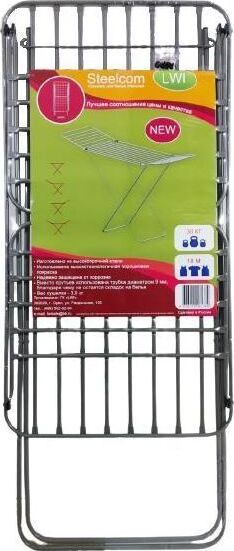 Сушилка для белья напольная складная. Стальной каркас серебристого цвета с антикорозийным полимерным покрытием и усиленными трубочными прутьями большого диаметра 9 мм .Общая рабочая длина прутьев 18 м. Рабочая нагрузка 30 кг. В разложенном виде габариты. 171х55х93 В сложенном виде габариты 55х5х119 вес 3,9 кг пр-во РОССИЯ