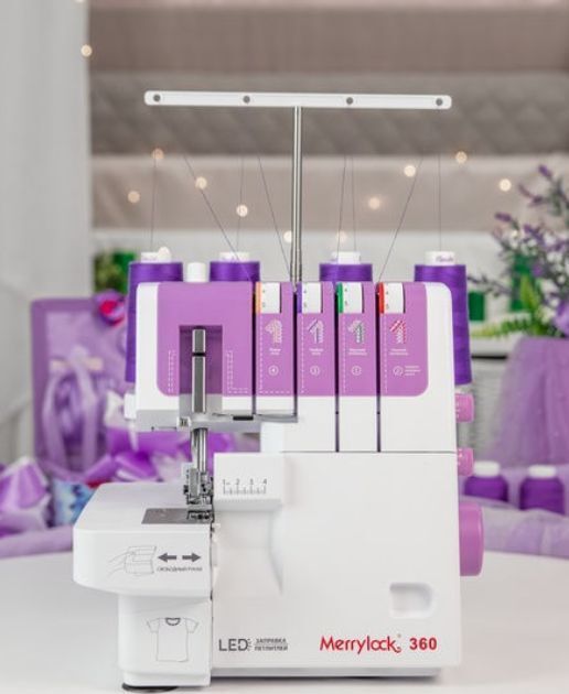 Merrylock (Мерилок) 360 - это простой и удобный современный оверлок, рассчитанный для домашнего использования и гарантирующий отличное качество шитья, равно как легких, так и плотных материалов, от шелка до джинсы.- Современный эффектный дизайн.- Помощник натяжения нити. Возможность оперативно и безошибочно корректировать натяжение, в соответствии с таблицей выполняемых строчек.- Базовый комплект наиболее важных краеобметочных операций.- Свободный рукав. Вы сможете просто шить манжеты и рукава круглой формы.- Регулятор давления прижимной лапки.- Ящик для обрезков.- Регулятор дифференциальной подачи ткани.- Регулятор ширины обрезки.- Двойная колоритная LED подсветка для освещения области шитья и области петлителя.- Удобная ручка для переноски.