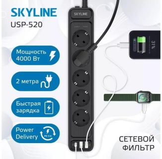 Сетевые фильтры (удлинители) SKYLINE USP-520 Black PD3.0