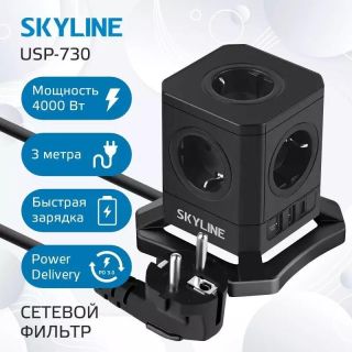 Сетевые фильтры (удлинители) SKYLINE USP-730 Black PD3.0