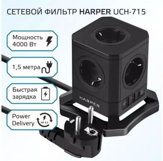 Сетевые фильтры (удлинители) HARPER UCH-715 Black PD3.0