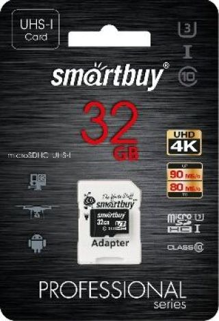 Карта памяти SMARTBUY (SB32GBSDCL10U3-01) MicroSDHC 32GB Class10 PRO (U3) + адаптер