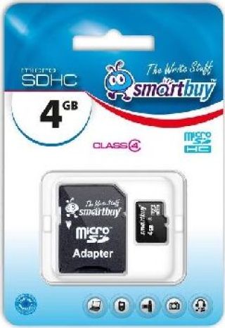 Карта памяти SMARTBUY (SB4GBSDCL4-01) MicroSDHC 4GB Class4 + адаптер
