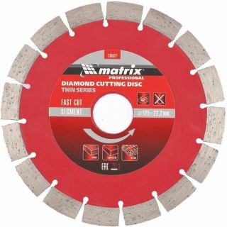 Диск алмазный MATRIX Диск алмазный, отрезной сегментный, 125 х 22.2 мм, тонкий, сухая резка Professional 730627
