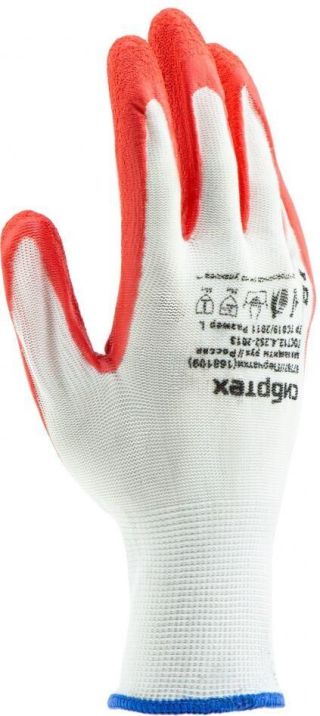 СИБРТЕХ Перчатки трикотажные полиэфирные, латексное рельефное покрытие, Россия, 67767