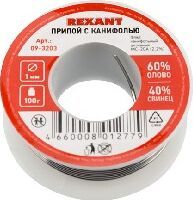 Припой REXANT (09-3223) ПРИПОЙ С КАНИФОЛЬЮ , 100 Г, 2.0 ММ, (ОЛОВО 60%, СВИНЕЦ 40%), КАТУШКА, БЛИСТЕР