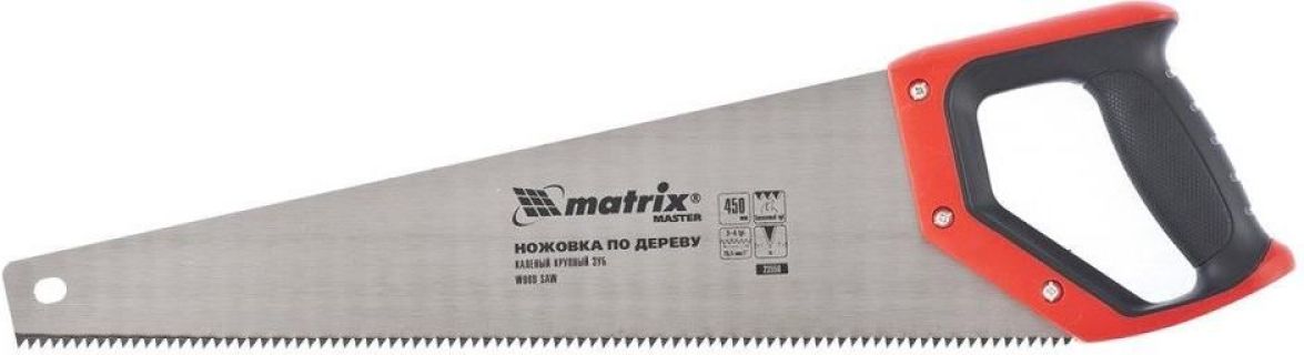 Ножовка MATRIX Ножовка по дереву, 450 мм, зуб 2D, каленый крупный зуб 5-6 TPI, двухкомпонентная рукоятка