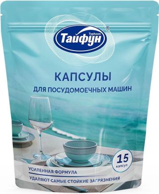Средство для ППМ ТАЙФУН 182098 Капсулы для посудомоечных машин, 15 шт