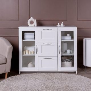 Корпусная мебель ГУД ЛАКК 2.02.03.380.1 СИРИУС тумба 2 двери со стеклом и 3 ящика 117х95 белая RU (2 пак.)