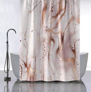 Штора для ванной САНАКС 01-110 Штора с рисунком БЕЖЕВЫЙ МРАМОР с ЗОЛОТОМ в ванную комнату без колец-полиэстэр 180х180см