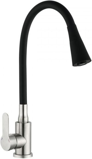 Смеситель АНТЕЙ 577033 Садко Смеситель д/кухни шар. с силиконовым изливом черный нерж.сталь 1/11